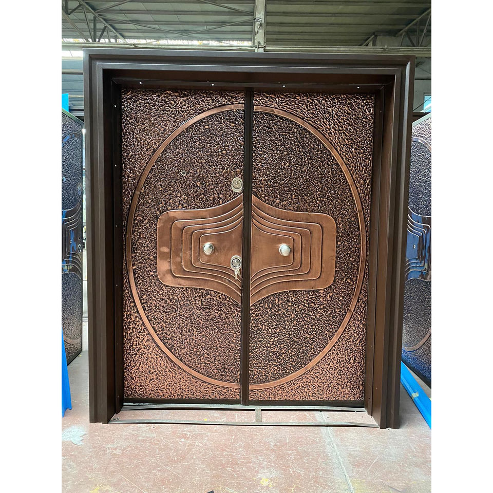 ประตูด้านนอกเป็นเหล็กทองแดงที่ทันสมัยสำหรับประตูทางเข้าด้านหน้าของวิลล่าทางเข้าด้านหน้าของหินลักษณะของโครงการทั้งหมด