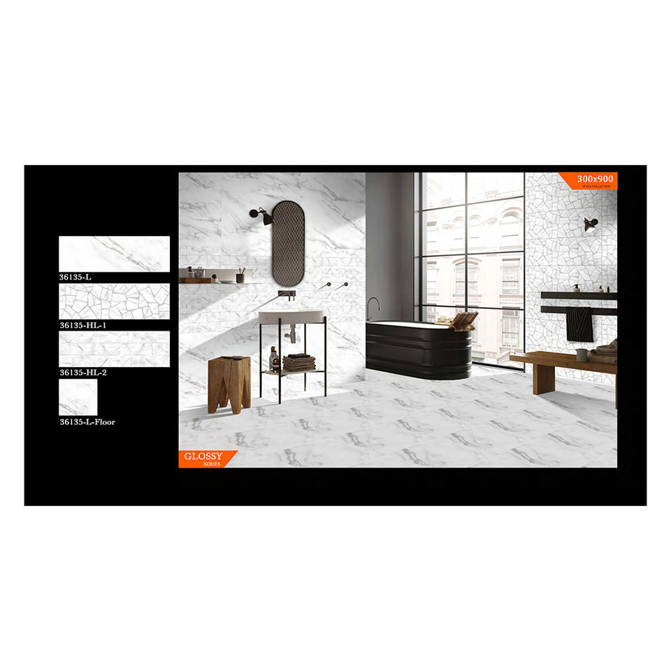 กระเบื้องปูพื้นพอร์ซเลนมันวาวและกระเบื้องผนัง30*90ดีไซน์ทันสมัย