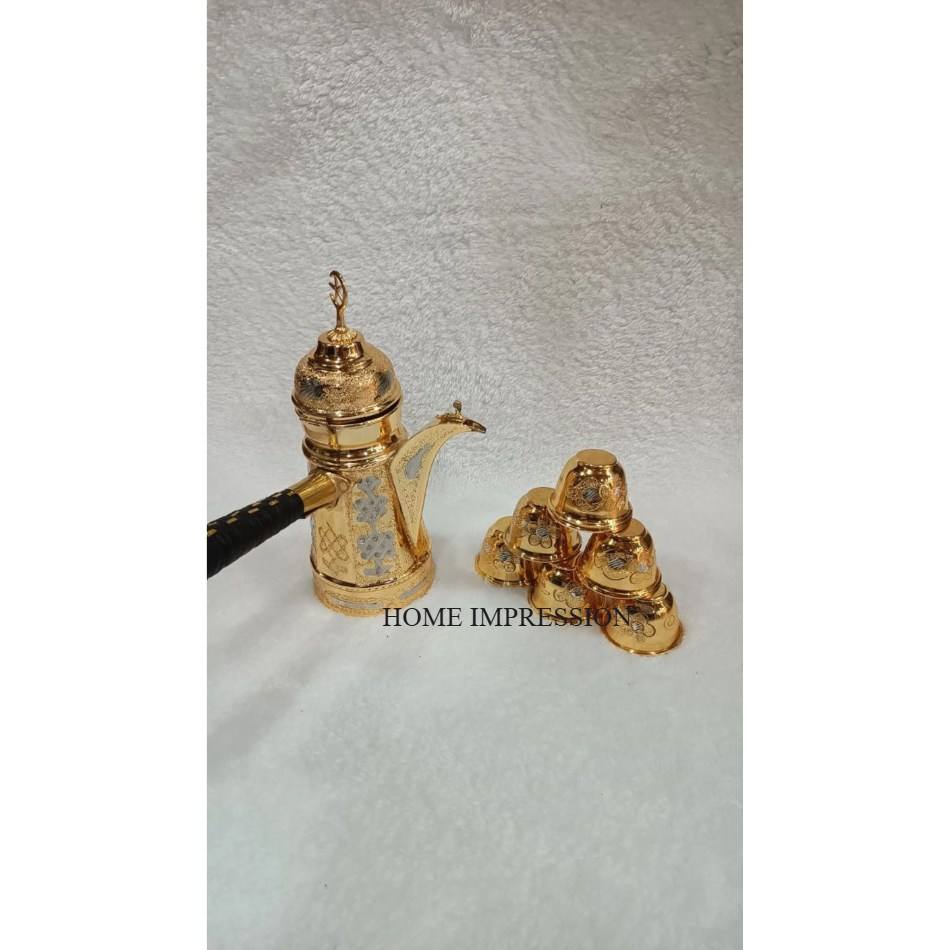 กาน้ำชาอาหรับคุณภาพสูง สีทอง ขนาด 1.0 ลิตร 1.5 ลิตร 2.0 ลิตร ขายส่ง กาน้ำกาแฟอาหรับ ปากยาว ดีไซน์ใหม่ ทำจากทองเหลือง