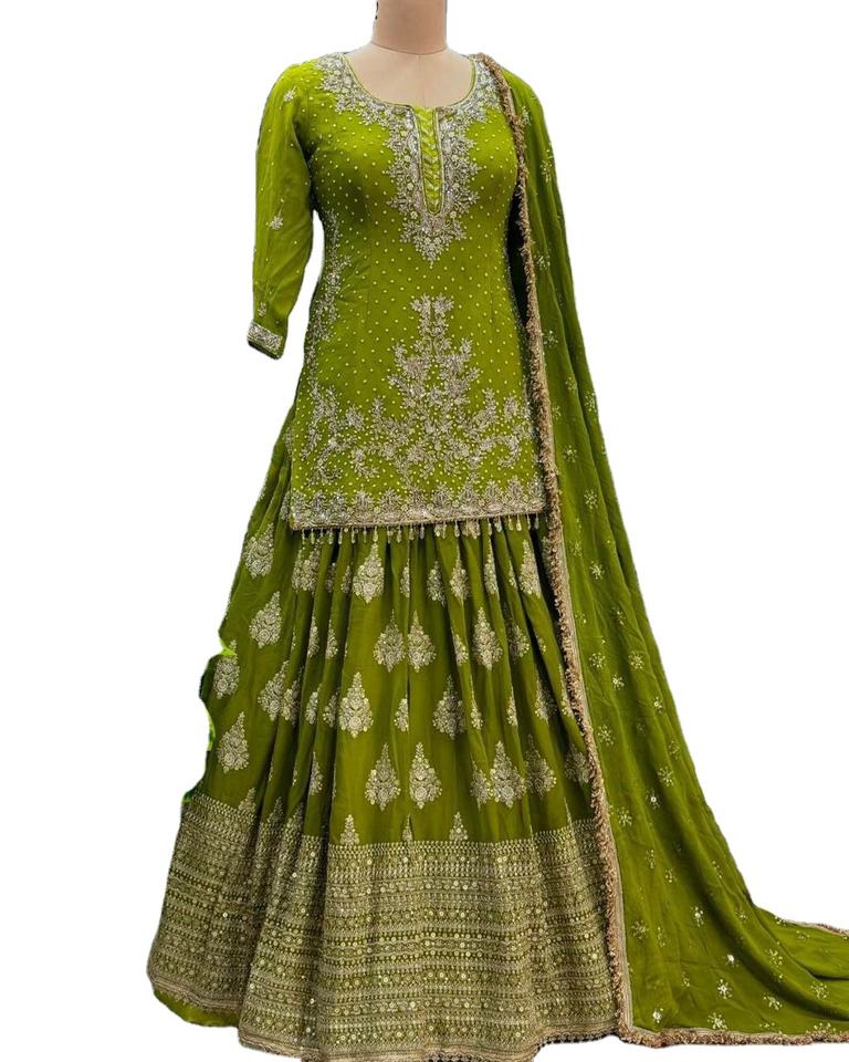 ชุดเลเฮนกา ซัลวาร์ กามีซ ผ้าไหมจอร์เจตต์ปักลายสไตล์อินเดียและปากีสถาน คุณภาพสูง ทันสมัย สำหรับงานปาร์ตี้ ไซส์พลัส แบบยังไม่เย็บติดกัน