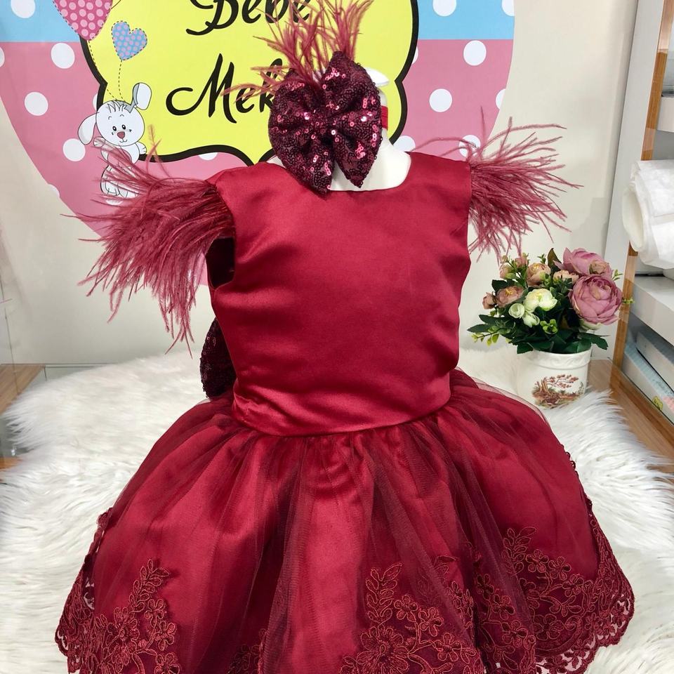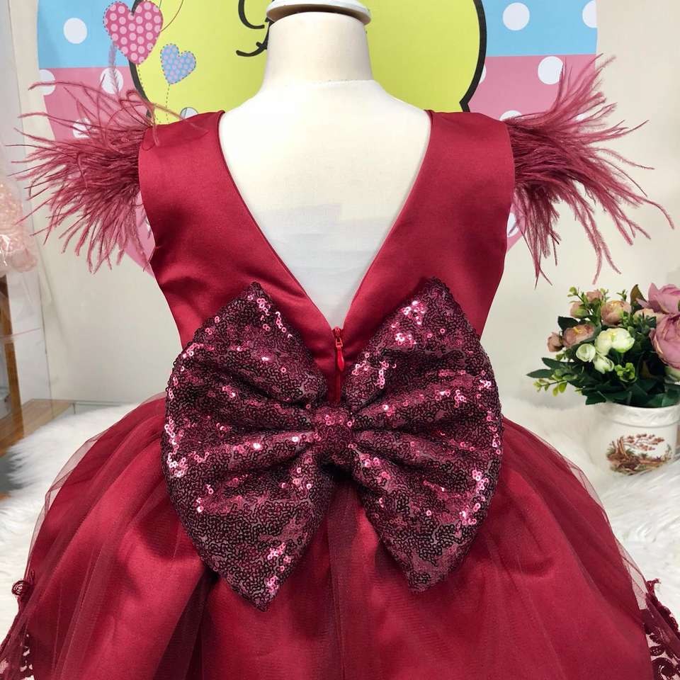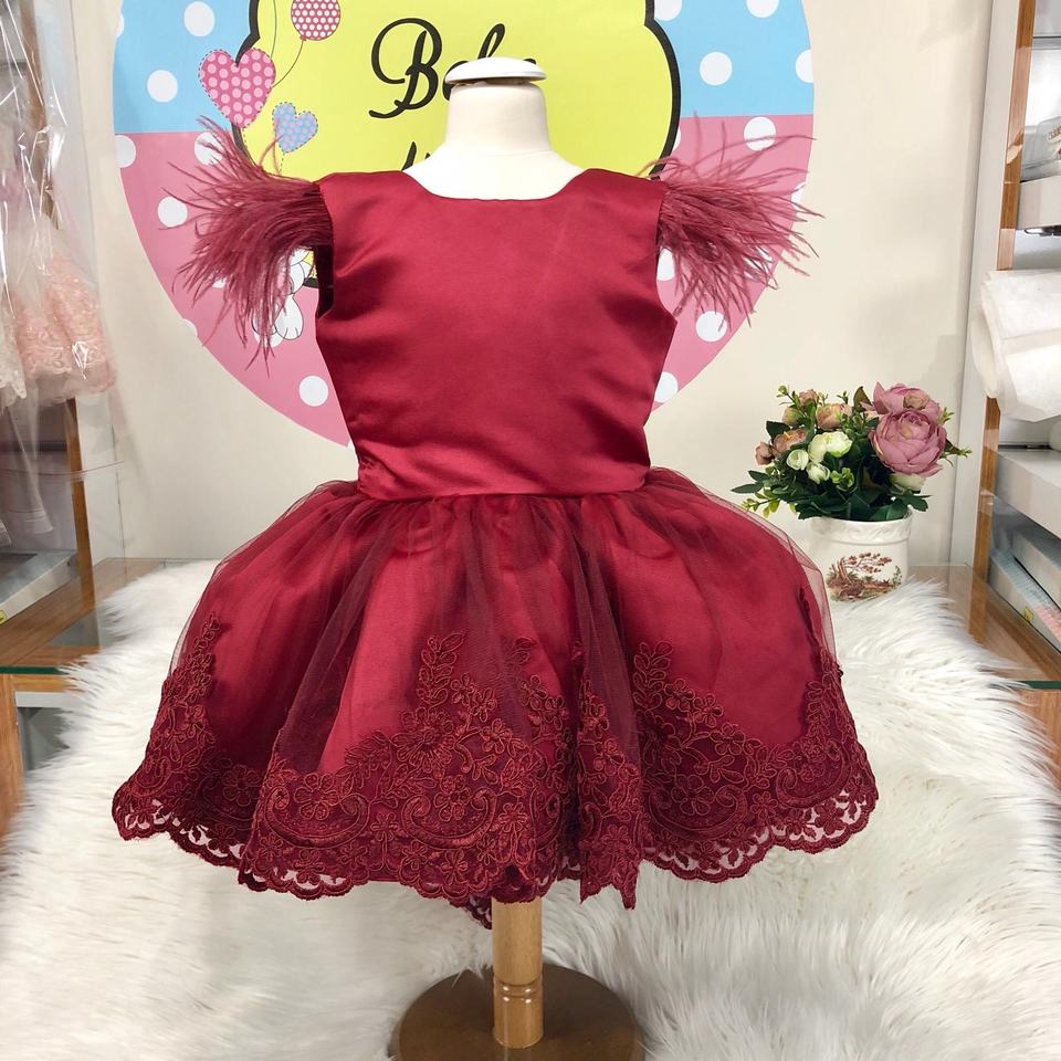 ชุดเดรสลูกไม้สีแดงสำหรับเด็กผู้หญิง,ชุดเดรสงานเลี้ยงวันเกิดหรูหราทันสมัยสีเบอร์กันดีสำหรับเด็กเกิดใหม่0-12เดือน