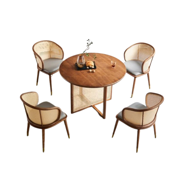 ชุดโต๊ะอาหารไม้หรูหราทันสมัยคุณภาพสูง พร้อมโครงหวายพนักพิงโค้ง สำหรับห้องรับประทานอาหาร