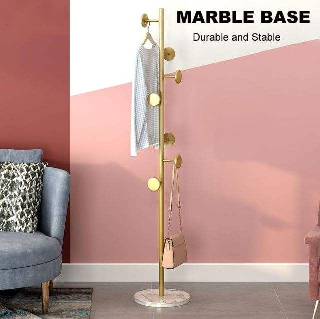 ชั้นวางเสื้อโค้ทโลหะตั้งได้พร้อมตะขอ8อันสำหรับจัดระเบียบหมวกผ้าพันคอห้องนั่งเล่นฐานหินอ่อนทันสมัย