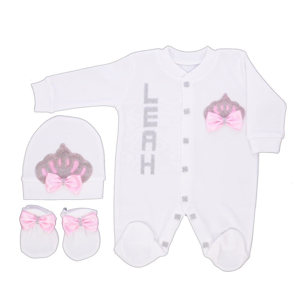 ที่มีคุณภาพสูงที่ทันสมัยทารกแรกเกิด3ชิ้นสีชมพูผ้าฝ้าย100% ถักแขนยาวไม้ไผ่ฟองทารกแรกเกิดเด็ก Romper ชุด