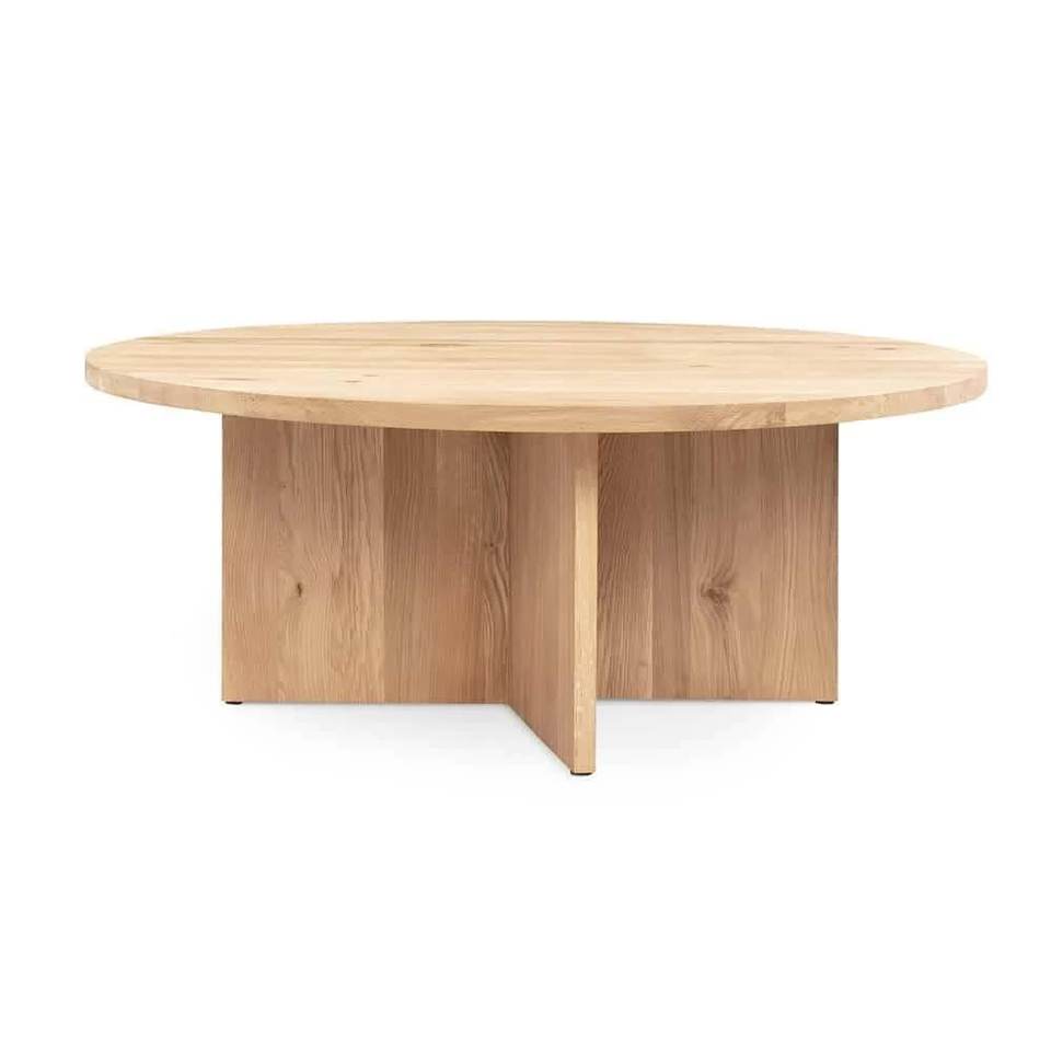 โต๊ะกาแฟทรงกลมทันสมัยคุณภาพสูง โครงไม้สักแท้สีธรรมชาติ ใช้ได้ทั้งภายในและภายนอกอาคาร เฟอร์นิเจอร์ห้องนั่งเล่นที่มีสไตล์