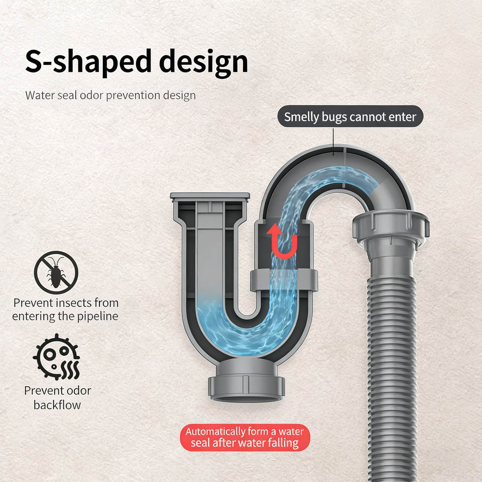 ท่อระบายน้ำอ่างล้างจานสแตนเลสคุณภาพสูงแบบทันสมัยสำหรับอ่างเดี่ยว เชื่อมต่อรวดเร็ว ท่อระบายน้ำพลาสติกสำหรับอ่างล้างจาน