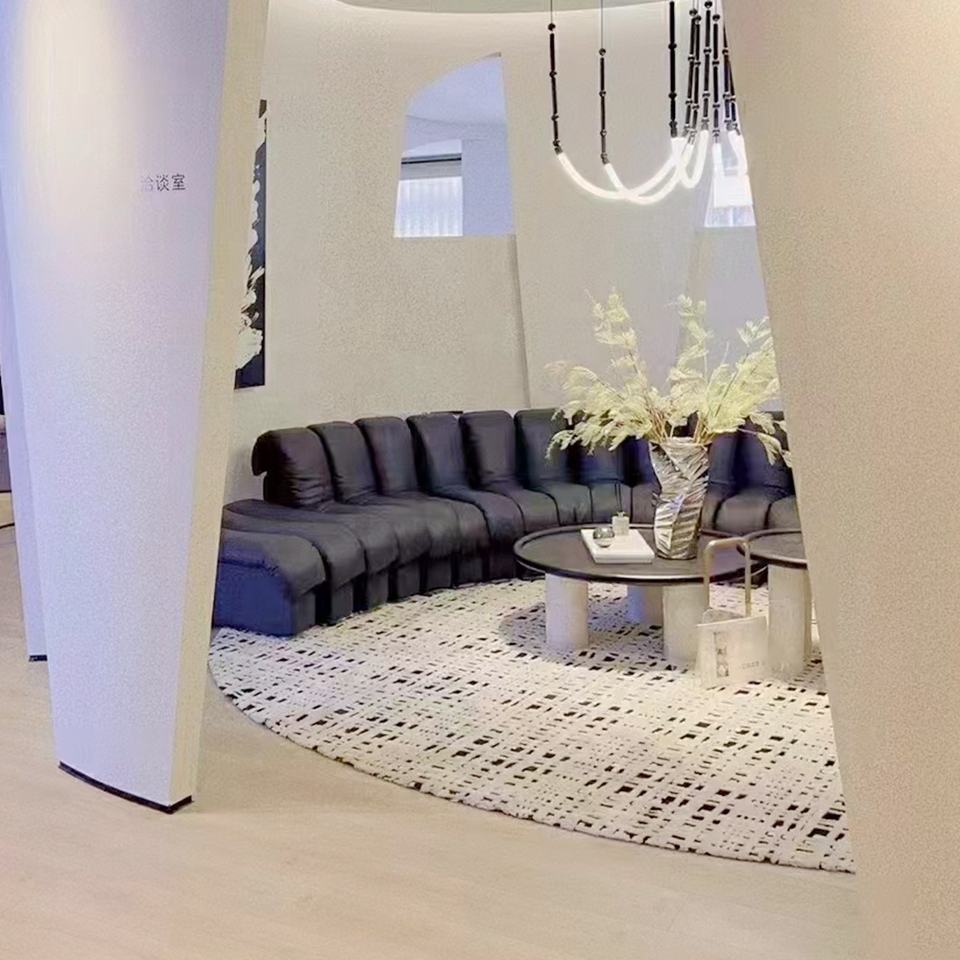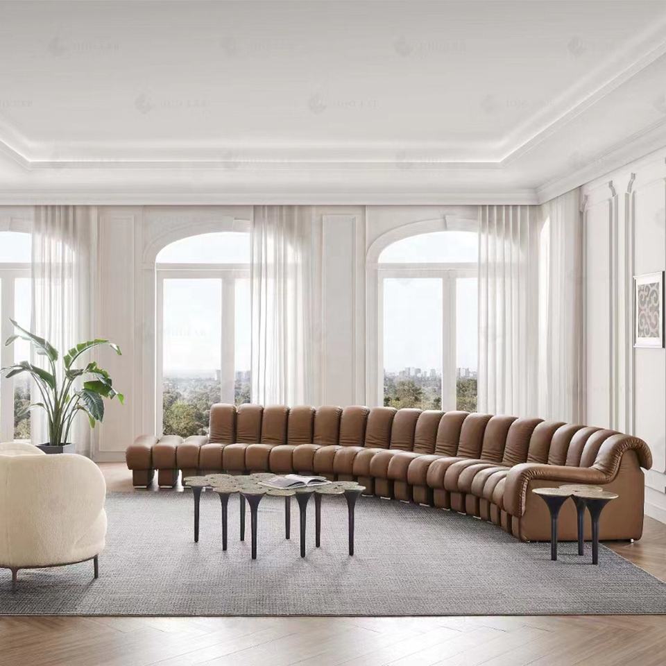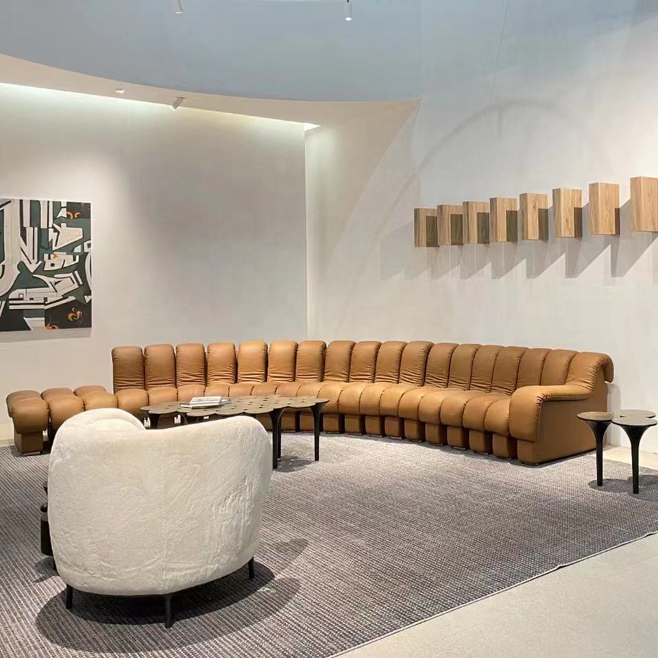 โซฟาสไตล์โมเดิร์น,โซฟาหนังทรงโค้งรูปตัวยูสำหรับห้องนั่งเล่นดีไซน์ใหม่หรูหรา