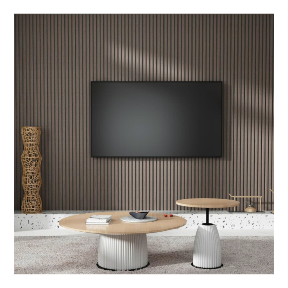 แผ่นผนังอะคูสติกกันเสียงแบบทันสมัยแผ่นยางอะคาเซียไม้ระแนงเป็นมิตรต่อสิ่งแวดล้อมสำหรับตกแต่งภายในผนังเพดาน