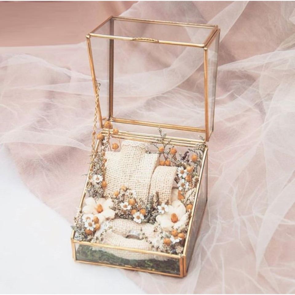 กล่องใส่แหวนแต่งงานทรงสี่เหลี่ยมทำจากทองเหลืองและกระจกคุณภาพสูง ดีไซน์ทันสมัย เหมาะสำหรับจัดแสดงและเก็บรักษา ของตกแต่งบ้าน ลดราคา