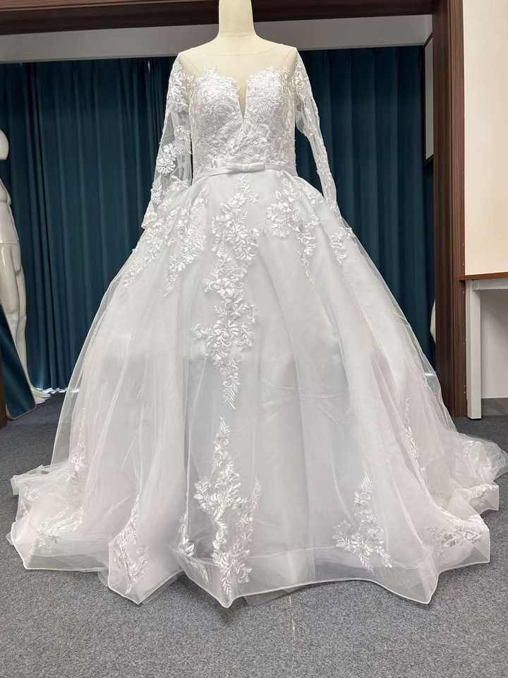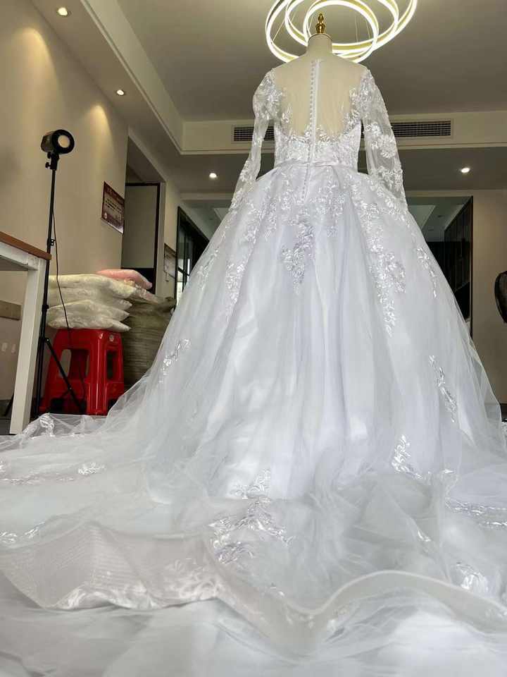 ชื่อผลิตภัณฑ์:ชุดแต่งงานลูกไม้สีขาวปักยาวรถไฟ
