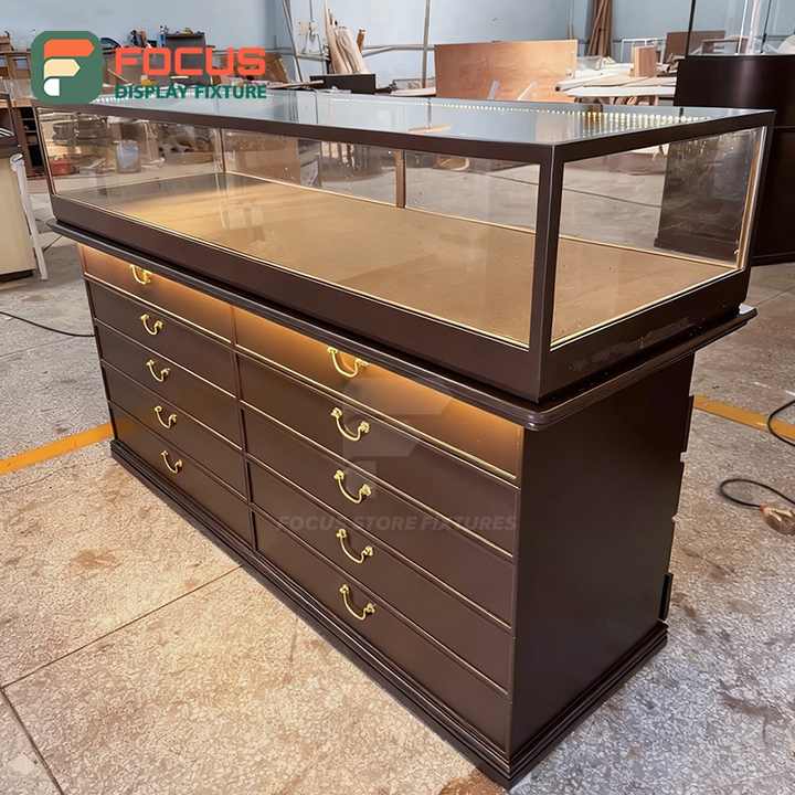 ตู้โชว์เครื่องประดับไม้คุณภาพสูง ดีไซน์ทันสมัย โครงสร้างโลหะ สำหรับห้างสรรพสินค้า