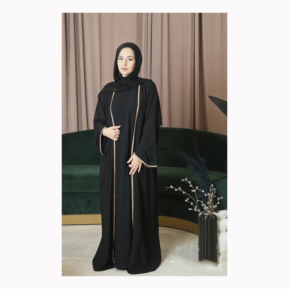 เดรสยาวคาฟตันสีดำล้วนพิมพ์ลายสไตล์เรียบง่ายสำหรับมุสลิมสำหรับเด็กหญิงและสตรี