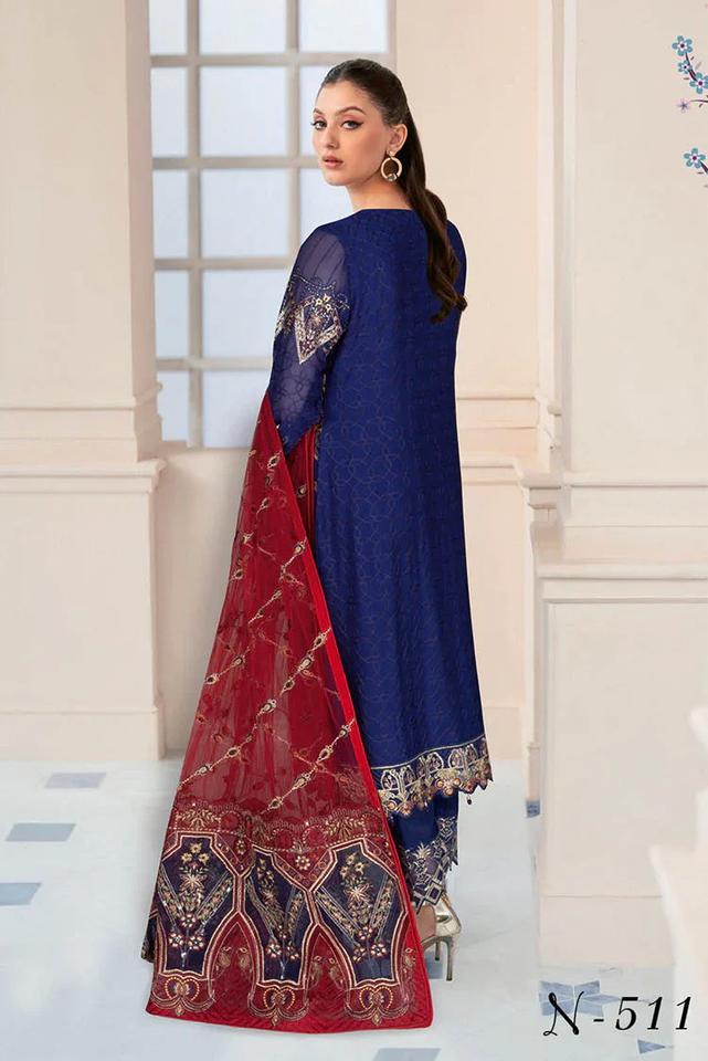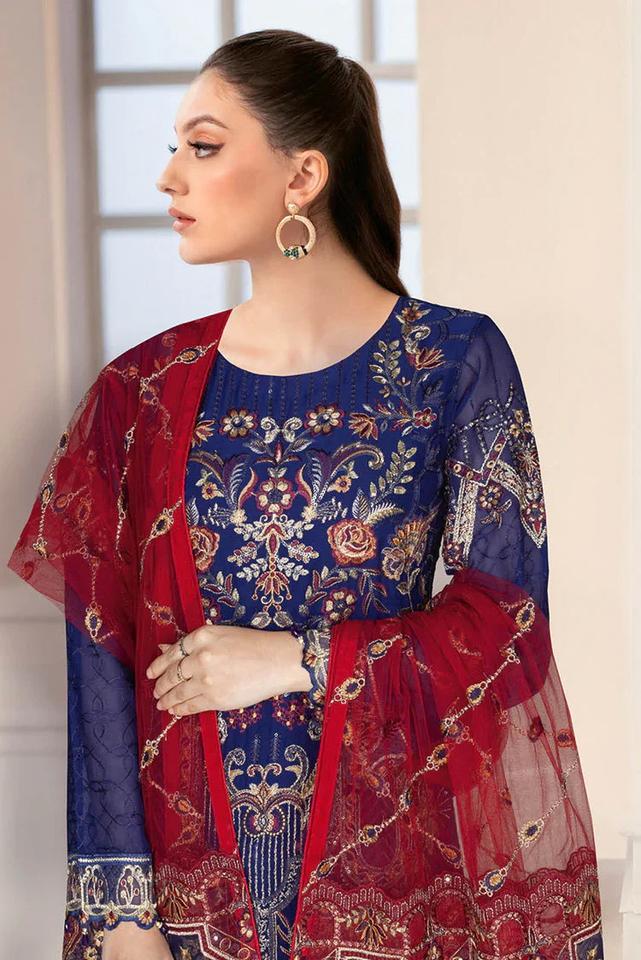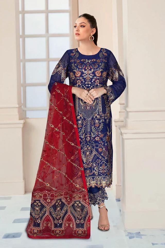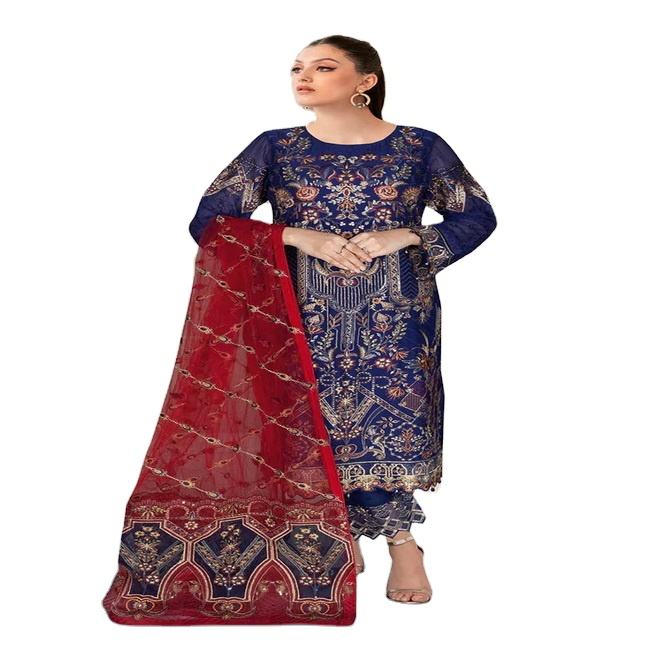 ชุดสูทผ้าชิฟฟ่อนปักลายสำหรับผู้หญิงสไตล์สุภาพเรียบร้อยระบายอากาศได้ดีดีไซน์อินเดีย salwar kameez