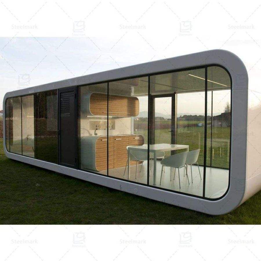 บ้านแคปซูลสำเร็จรูปคุณภาพสูง: บ้านสำเร็จรูปทรงแอปเปิ้ลยอดนิยม และบ้านพักอาศัยกลางแจ้งโครงสร้างเหล็กสมัยใหม่