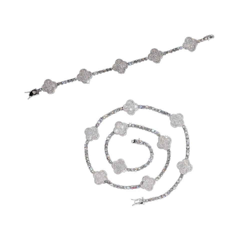 สร้อยข้อมือเทนนิสทรงใบโคลเวอร์สี่แฉกประดับมอสซาไนต์คุณภาพสูง เงินแท้ สไตล์ฮิปฮอป สำหรับผู้หญิง จาก Al Malik Jeweller สินค้าขายดีในยุโรป/อเมริกา