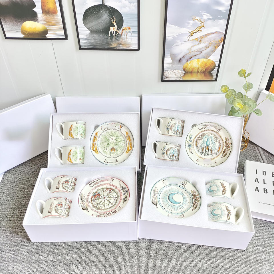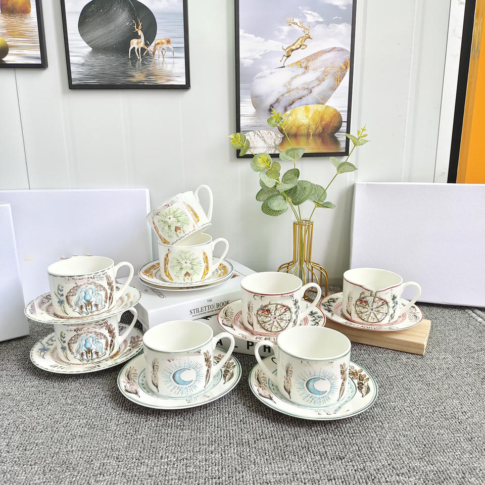 ถ้วยกาแฟและจานรองชาลายพระจันทร์คุณภาพสูงทำจากกระเบื้องเนื้อละเอียด