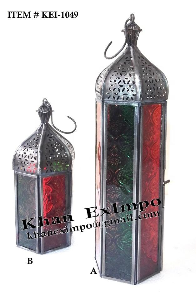 โคมไฟตั้งโต๊ะสไตล์วินเทจของโมร็อกโกทำจากเหล็กบริสุทธิ์ตกแต่งคริสต์มาสบรรจุกล่องขายส่งแก้วโลหะของผู้จำหน่ายในอินเดีย