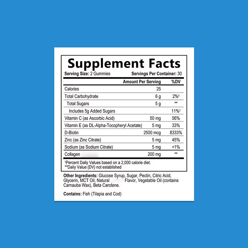 วิตามินซี, วิตามินอี, ไบโอติน, สังกะสี, คอลลาเจนไฮโดรไลซ์