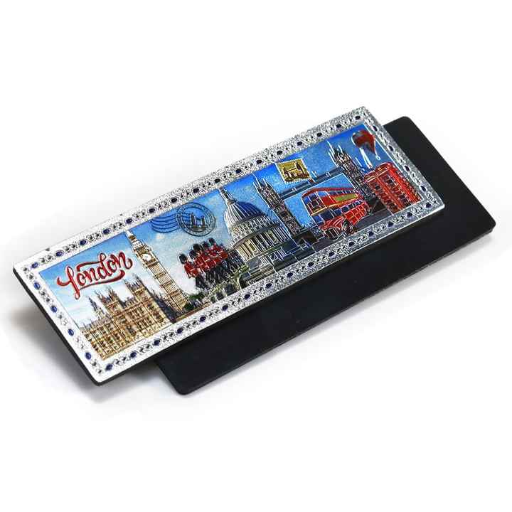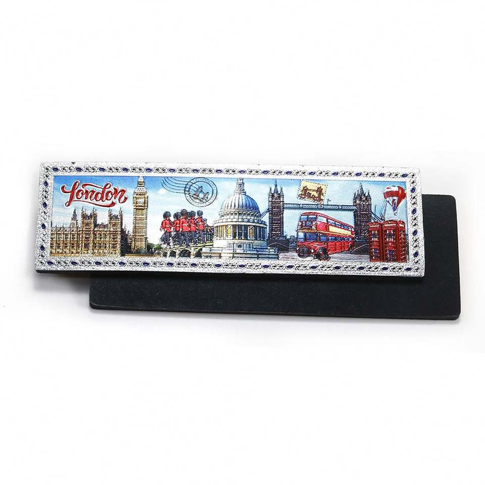 แม่เหล็กติดตู้เย็นคุณภาพสูง หลายสี แบบสร้างสรรค์ ลายฟอยล์สีเงิน สติกเกอร์ตกแต่งจากสหราชอาณาจักร ของที่ระลึกจากลอนดอน แผ่นแม่เหล็ก 3 มิติ