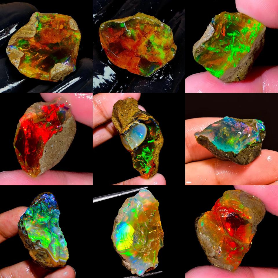 หินโอปอลเอธิโอเปียธรรมชาติใช้เป็นไฟหลากสีอัญมณีสีหยาบอัญมณีหลวมทำจากทองคำขายส่ง
