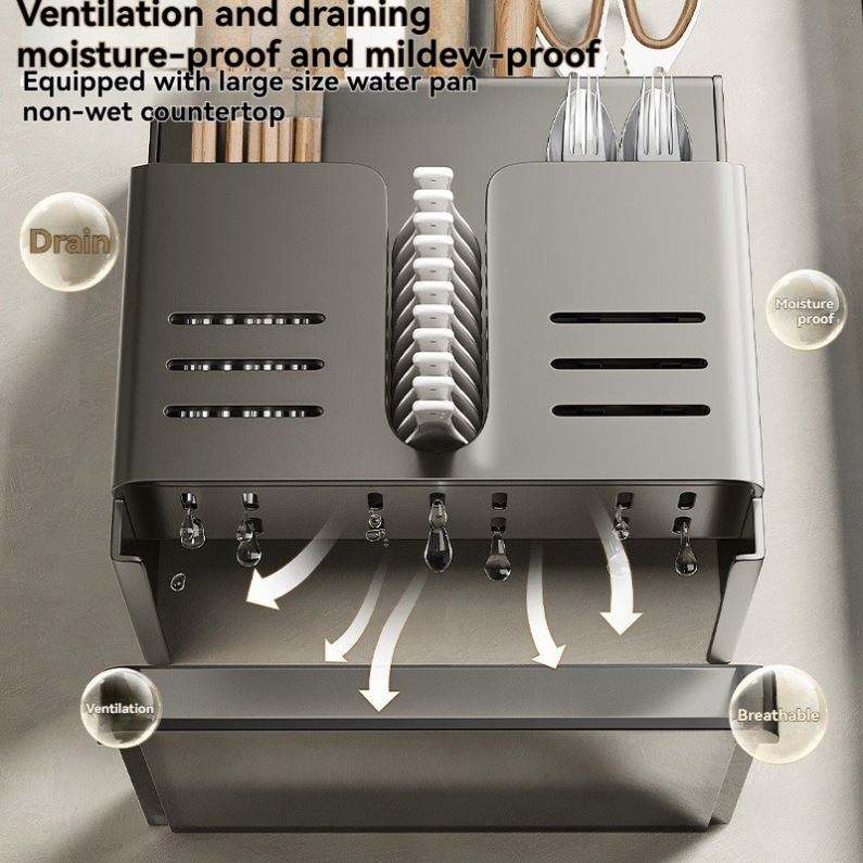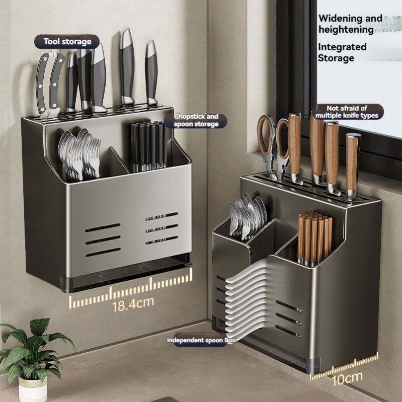 ที่แขวนมีดเหล็กกล้าคาร์บอนคุณภาพสูงอเนกประสงค์แบบไม่ต้องเจาะรู พร้อมที่วางตะเกียบไม้ไผ่สำหรับอุปกรณ์ครัว
