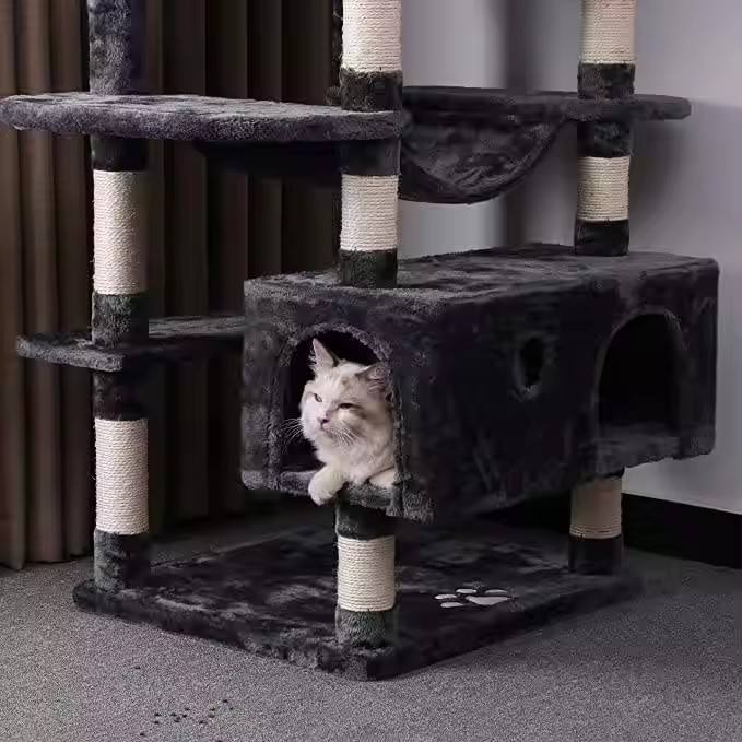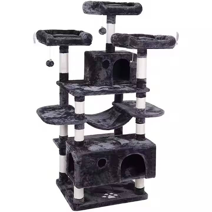 เสาไม้สำหรับแมวหอแมวในร่มมีหลายระดับพร้อมคอนโดและเสาข่วนสำหรับลูกแมว