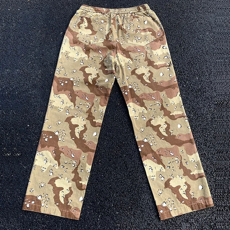 กางเกงคาร์โก้ผู้ชายผู้หญิงคุณภาพสูงมีกระเป๋าหลายสายโอเวอร์ไซส์ลายพรางทะเลทรายทรงสลิมฟิตผ้าฝ้ายคริสตัล