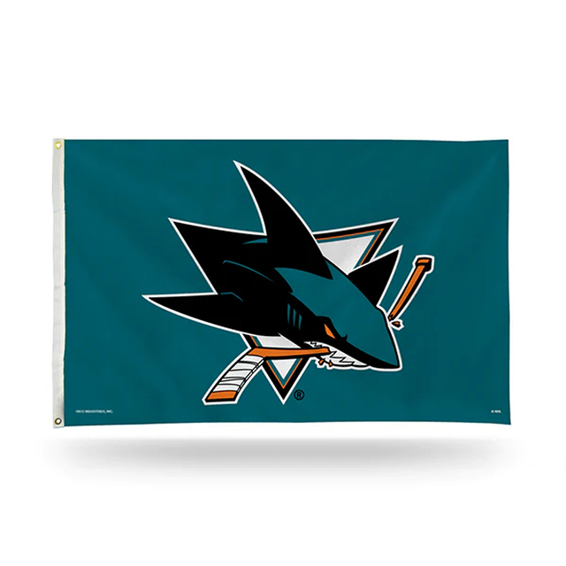 ธงคุณภาพสูง พิมพ์ลายตามสั่ง ขนาด 3x5 ฟุต โพลีเอสเตอร์ 100% พิมพ์สองด้าน โลโก้ทีมซานโฮเซ่ ชาร์คส์ แบบกำหนดเอง