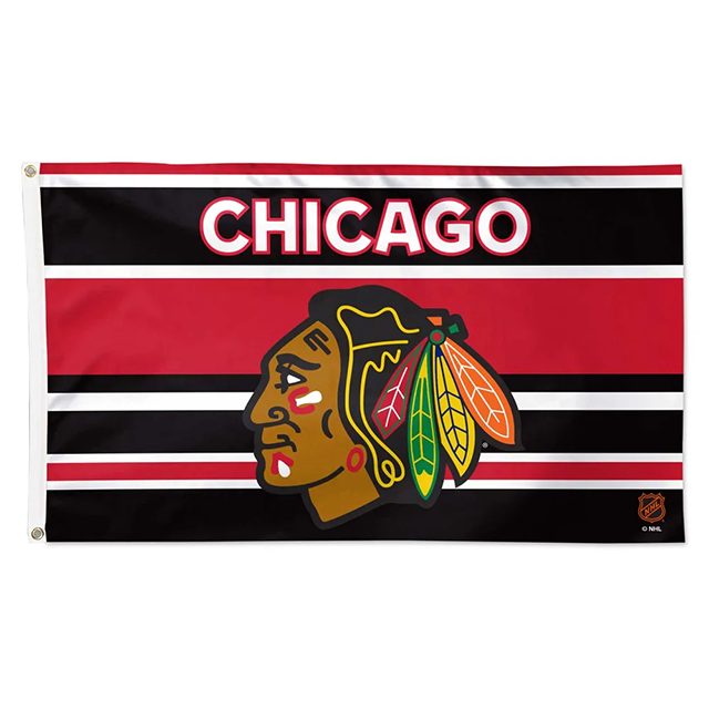 ธงคุณภาพสูง พิมพ์ลายตามสั่ง ขนาด 3x5 ฟุต โพลีเอสเตอร์ 100% พิมพ์สองด้าน โลโก้ทีมชิคาโก้ แบล็คฮอว์กส์ แบบกำหนดเอง