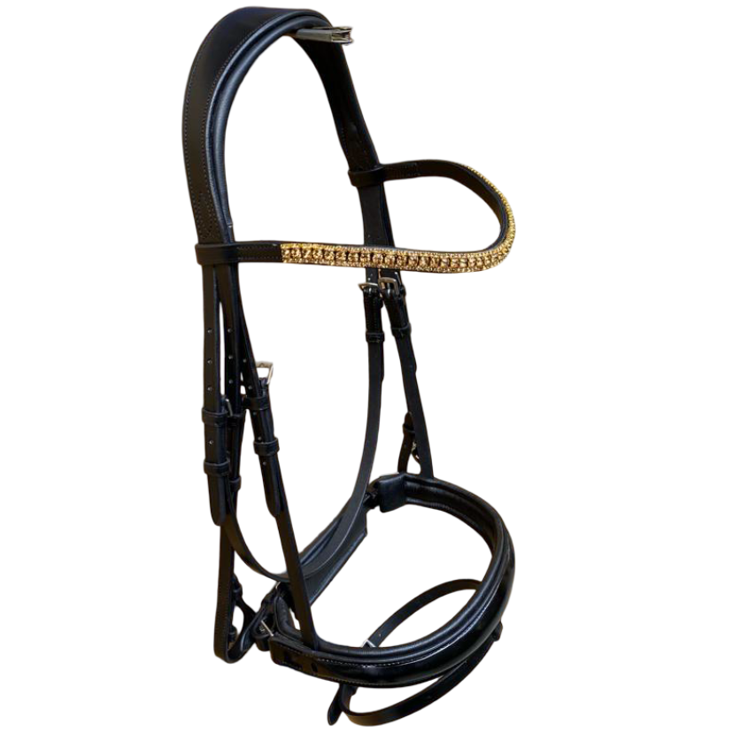 Nida anatomic Dressage bridle หนังผักย้อมสีแบบกลองสีดำแฟชั่นคริสตัลสวมใส่สบายดูแลม้า