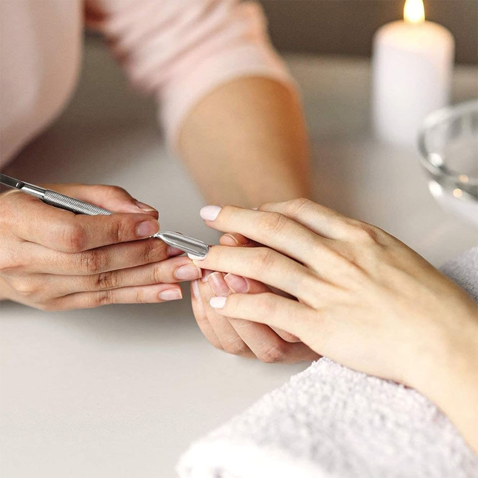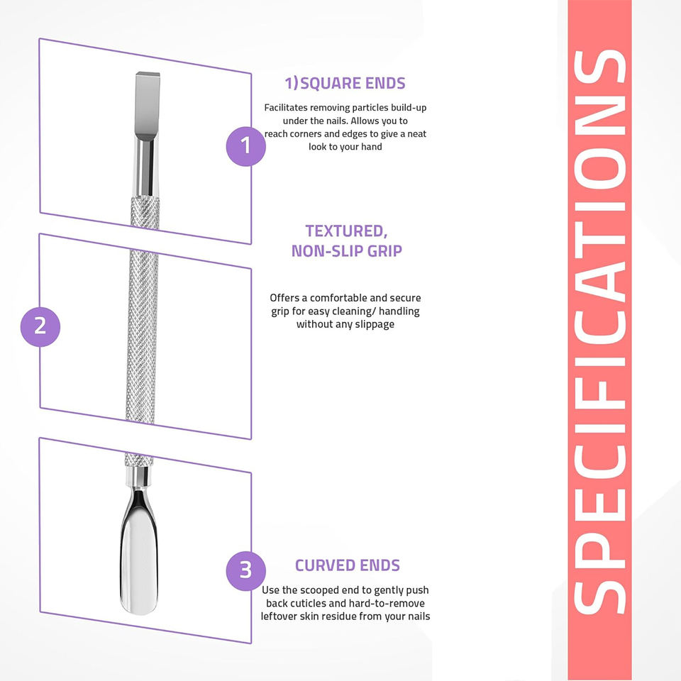 ที่ดันหนังกำพร้าเล็บคุณภาพสูง ขัดเงาด้วยกระจก ผลิตจากสแตนเลสสตีล ด้ามจับแบบรัสเซีย สำหรับกำจัดหนังกำพร้าที่ตายแล้ว