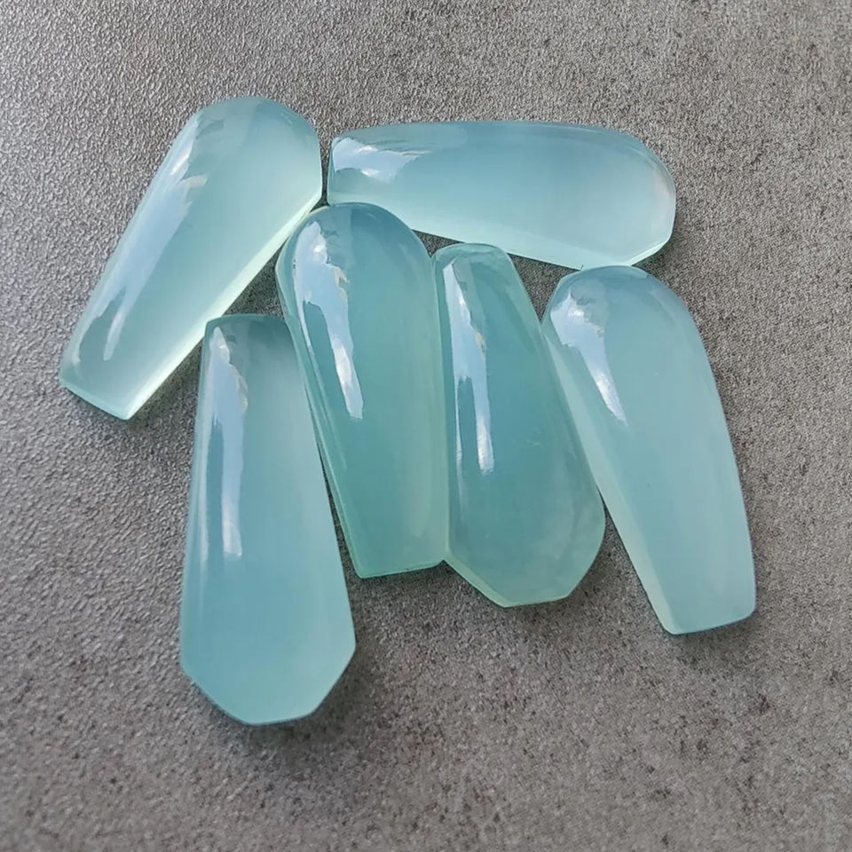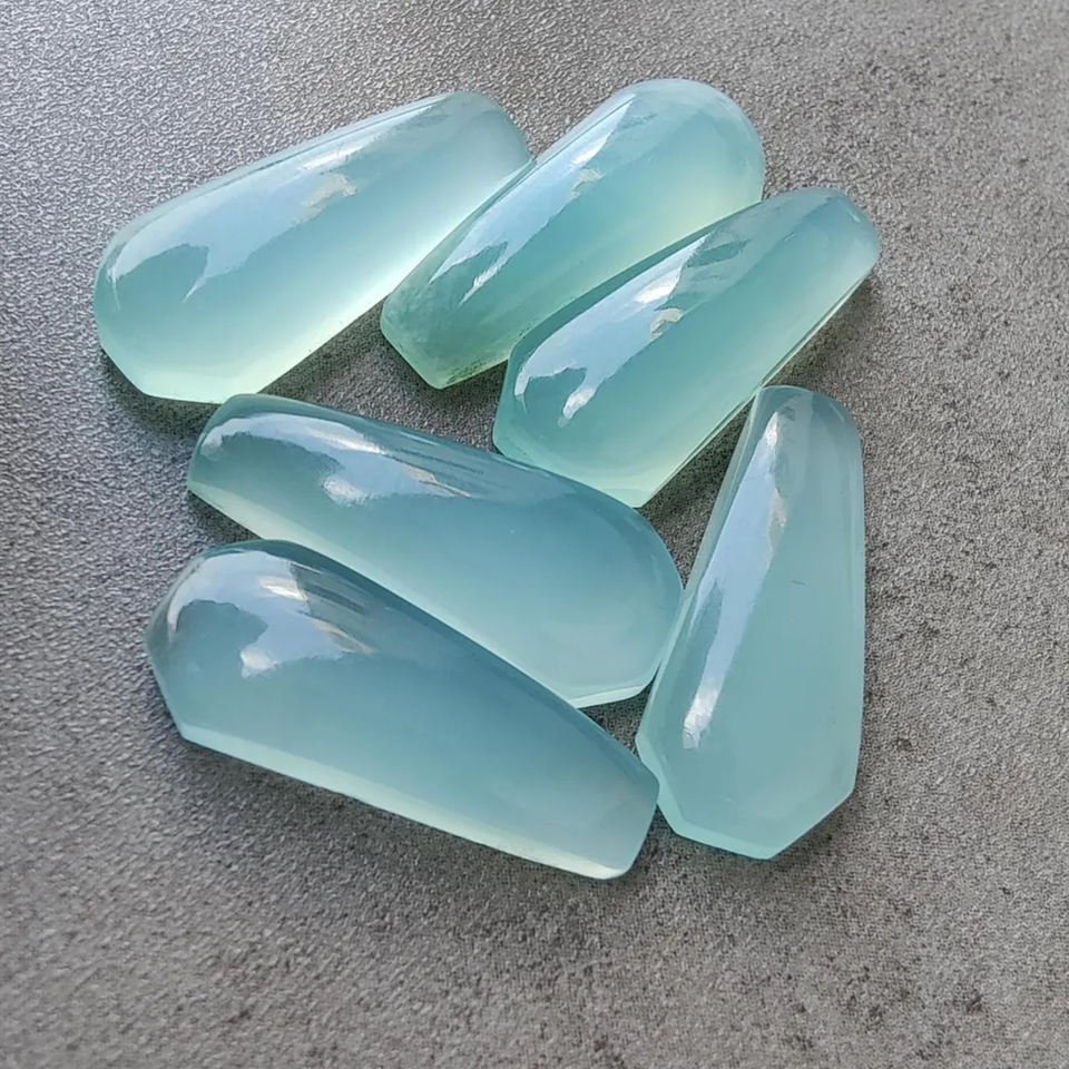 หินอัญมณีทรงโลงหินควอเทอราโลนีธรรมชาติทรงหลังเรียบมีสีเขียวทุกขนาด