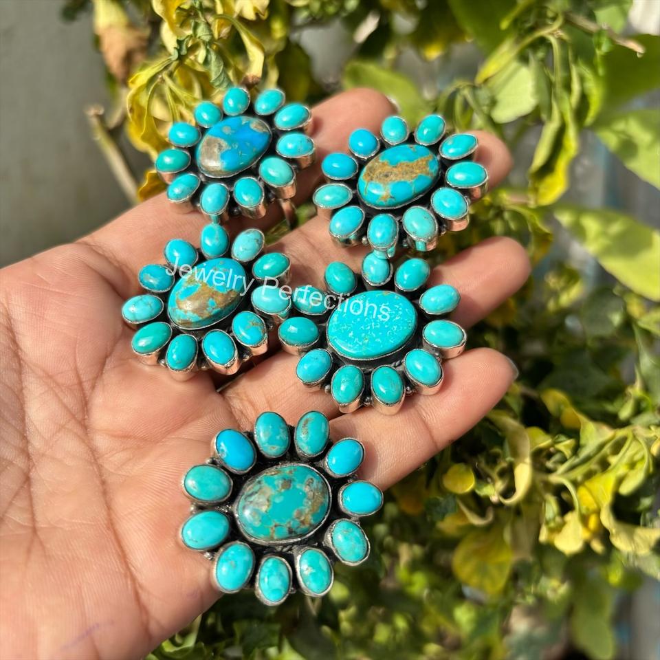 แหวนเทอร์ควอยซ์ธรรมชาติคุณภาพสูงจากแอริโซนา แหวนเงินชุบ แหวนแฟชั่นประดับพลอยทองเหลืองขายส่ง เครื่องประดับกันน้ำ