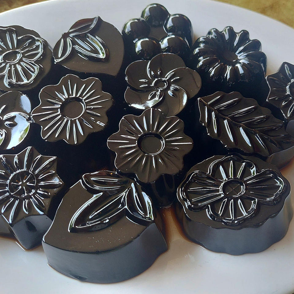 ส่วนผสม:แป้งเยลลี่ดำ 85%, แป้งข้าวโพด 15%