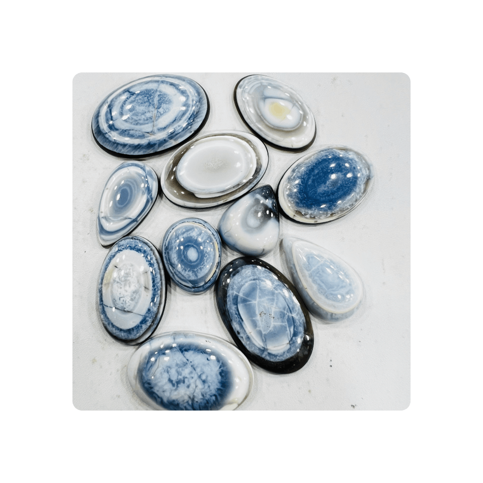 พลอยบลูคาโบชองธรรมชาติคุณภาพสูง รูปทรงและขนาดผสม 30-50 มม. สำหรับทำเครื่องประดับ ขายส่งจำนวนมาก