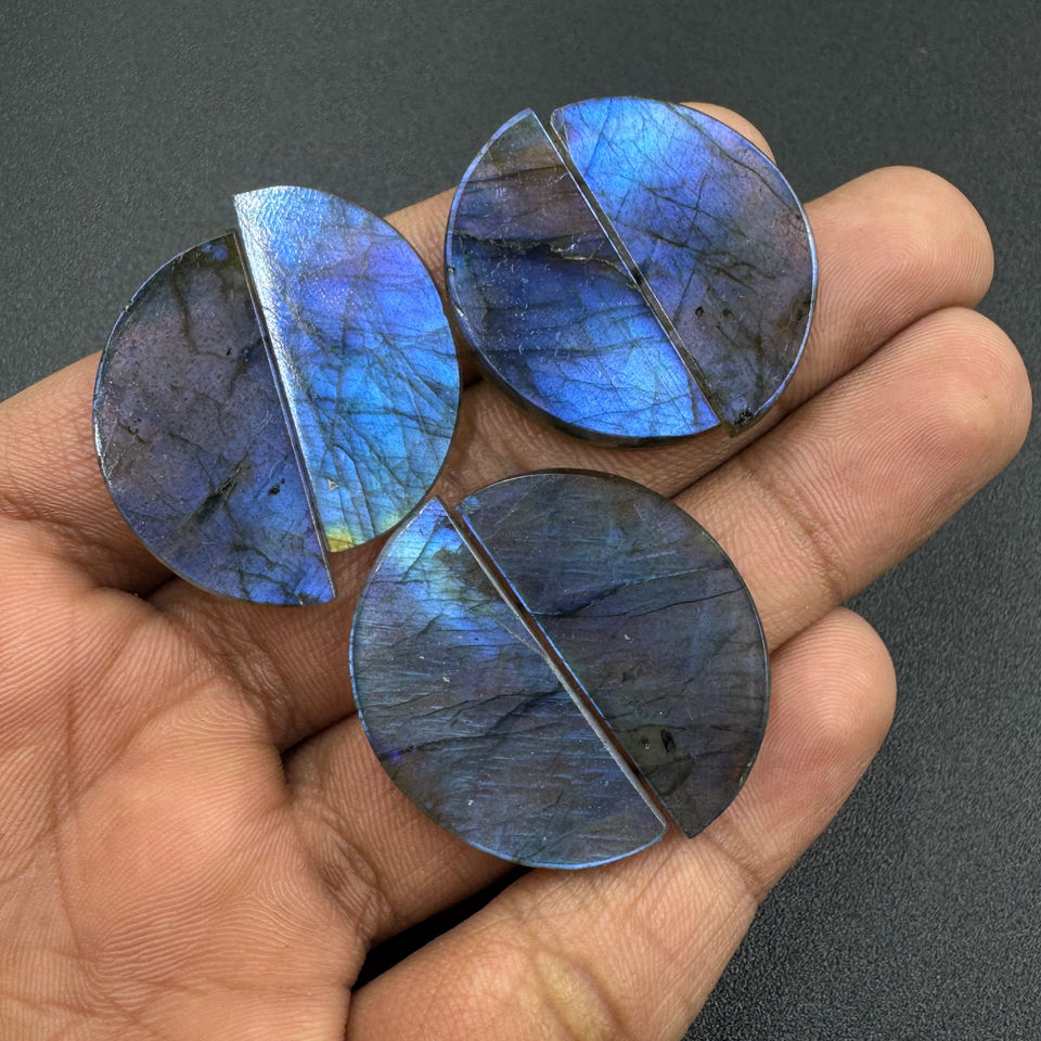 อัญมณีคริสตัลทรงหลวมรูปเหรียญลาบราดอไรต์สีฟ้าดูฉูดฉาดเหมาะสำหรับการทำเครื่องประดับอัญมณีขายส่ง