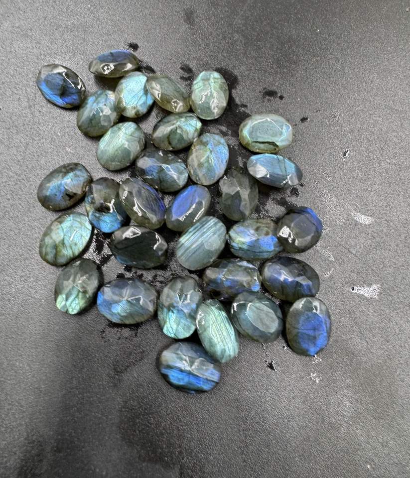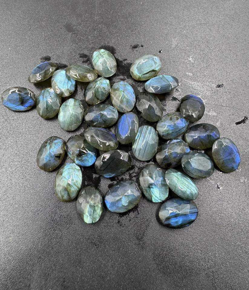 หินลาบราดอไรต์ธรรมชาติเจียระไนเป็นรูปวงรีขนาด13x18มม. อัญมณีหลวมสำหรับทำเครื่องประดับอัญมณีขายส่ง
