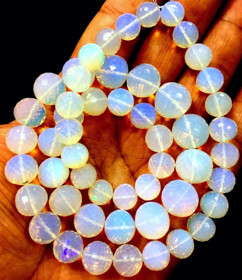 ลูกปัดมูนสโตนสีฟ้าธรรมชาติคุณภาพสูงเครื่องประดับหินเรียบขนาด8มม. และ4มม. สำหรับสร้อยคอสวยงามของขวัญพิเศษ