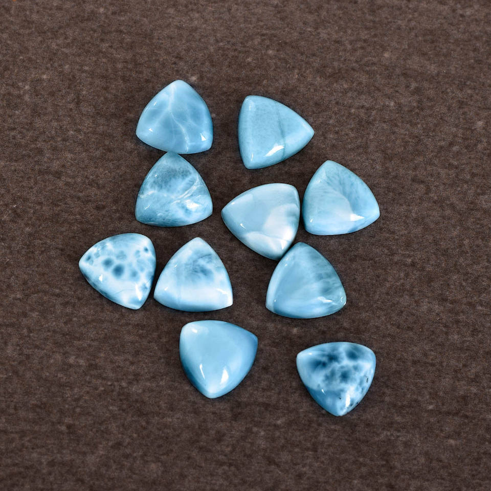 หิน Larimar Cabochon ทรงสามเหลี่ยมสีน้ำเงินธรรมชาติขนาด3-21มม. อัญมณีสอบเทียบหลวมสำหรับทำเครื่องประดับ