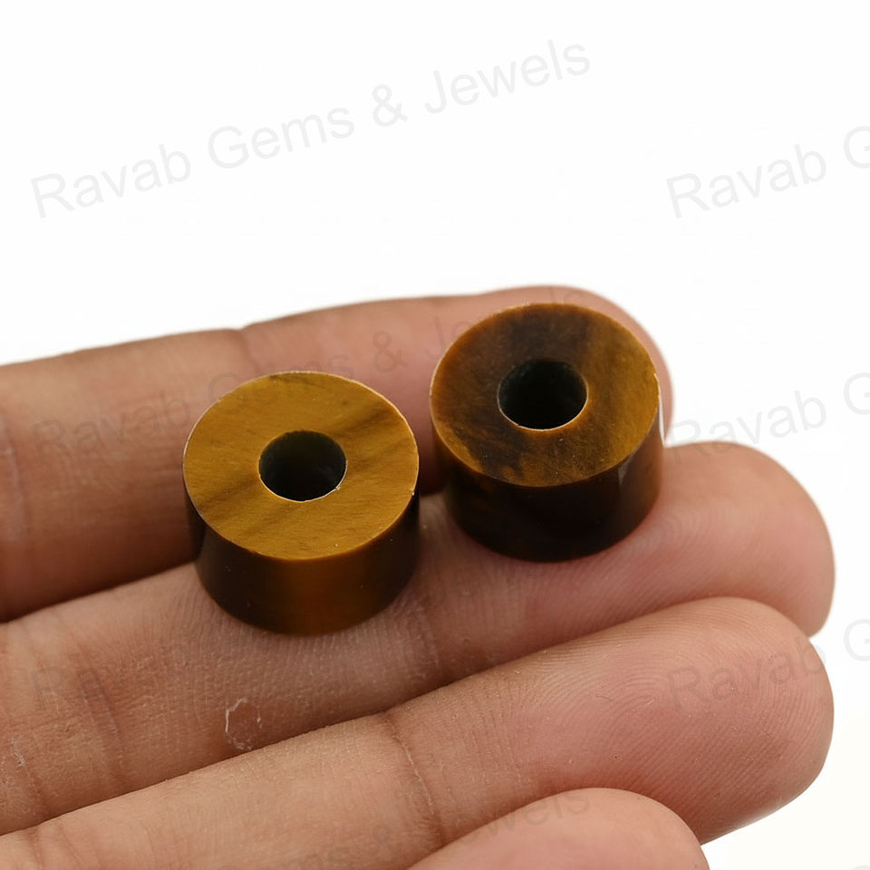 ลูกปัดคริสตัลไทเกอร์อายสีน้ำตาลธรรมชาติคุณภาพสูง รูปทรงกระบอกแบน ขนาด 14x8x5 มม. รูใหญ่ 5 มม. ขัดเงาอย่างดี