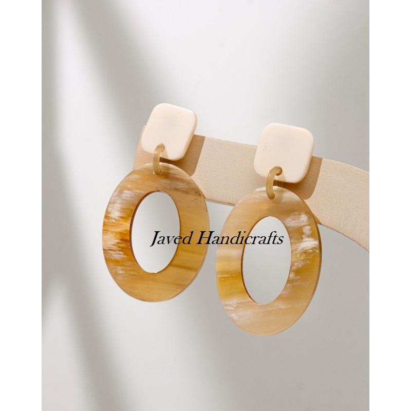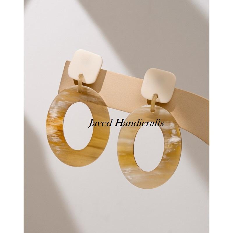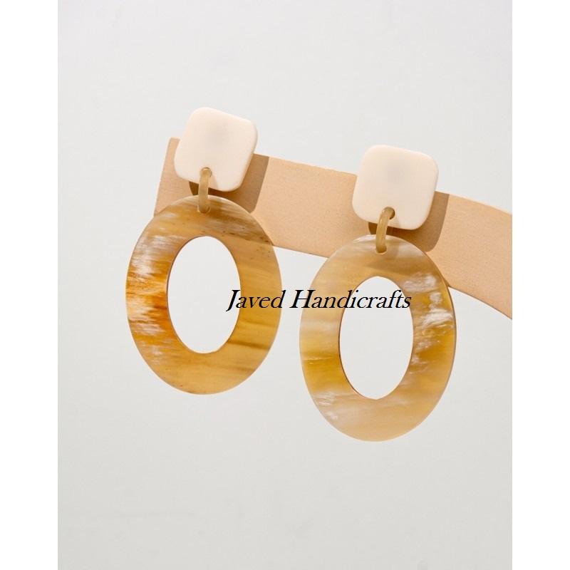 ชุดต่างหูรูปวัวฮอร์นสำหรับผู้หญิงชุดรูปแบบสัตว์พร้อมไม้ถูพื้นเทคนิคขัดเงางานฝีมือจากธรรมชาติ