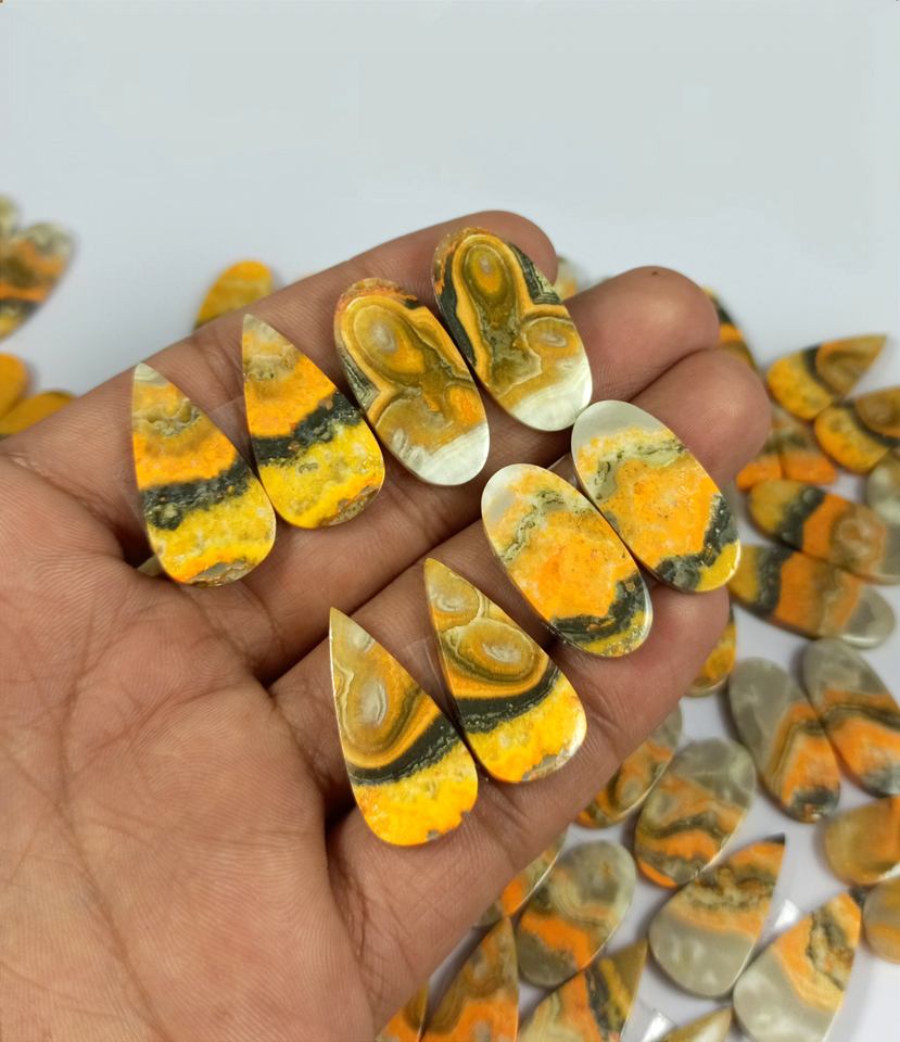 พลอยแจสเปอร์บัมเบิลบีธรรมชาติทรงหลวมคริสตัลอัญมณีสำหรับทำเครื่องประดับเงิน