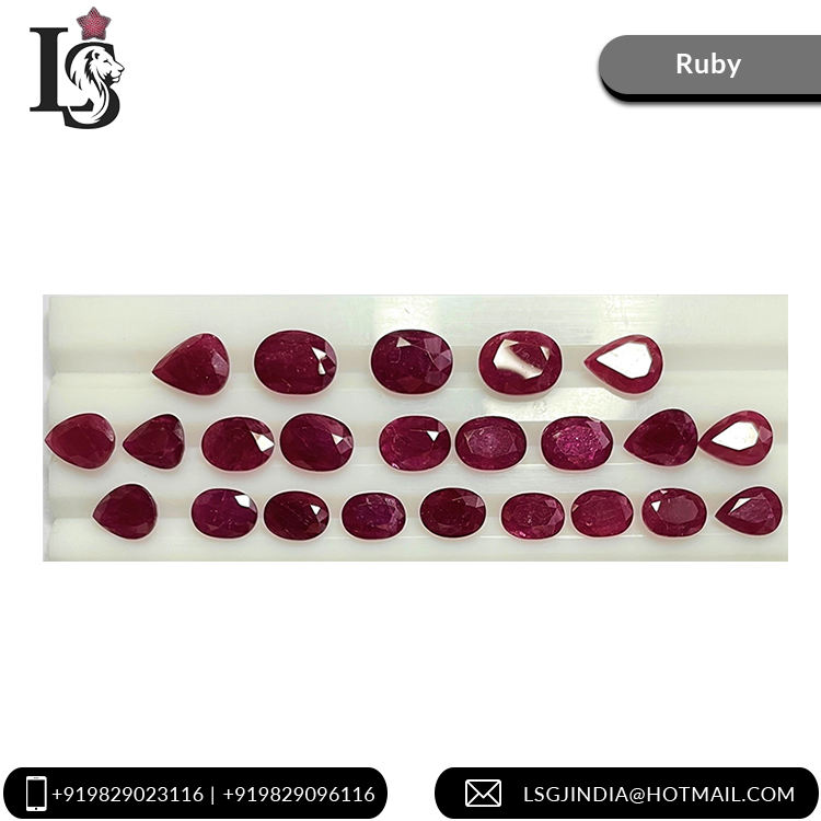 พลอยทับทิมทรงลูกแพร์ทรงรีสีแดงเลือดขนาด6x8 7x9 8x10มม.