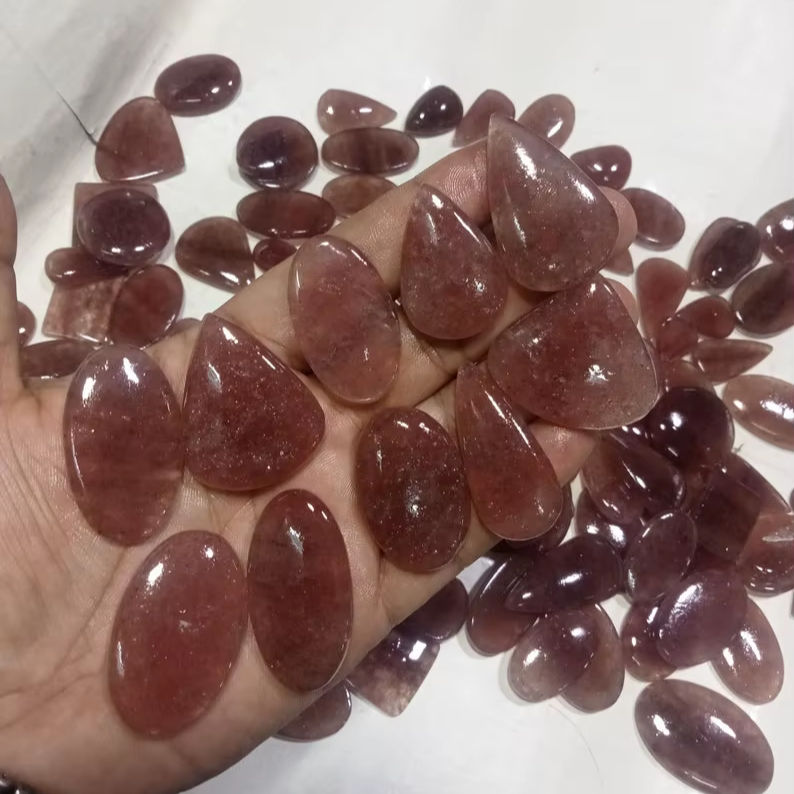 หินควอทซ์ผสมเชอร์รี่ธรรมชาติสีดำแบบหลวมสำหรับทำเครื่องประดับ