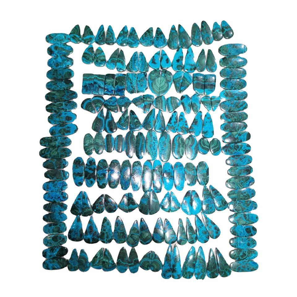คริสโซคอลล่า มาลาไคต์ พลอยธรรมชาติคุณภาพสูง คู่พลอยทรงคาโบชอง รับรองโดยบุคคลที่สาม ขายส่งราคาดีที่สุด ต่างหูแบบคู่ คูชิ