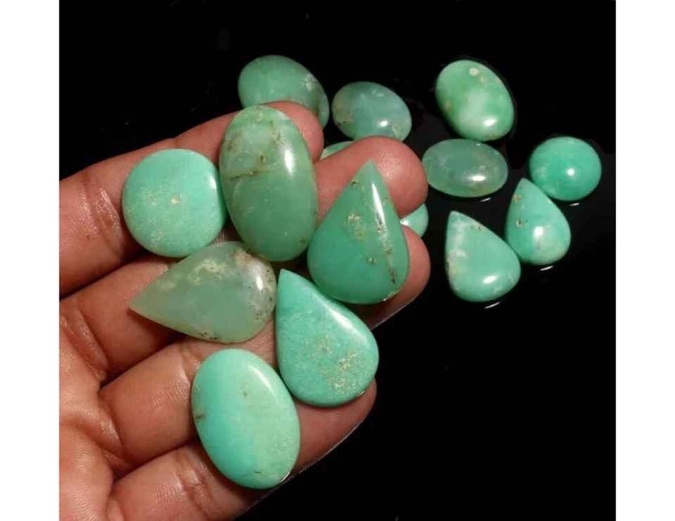 หินคริสโซเพรสธรรมชาติอัญมณีเจียระไนแบบหลวมหินบำบัดสีเขียวแบบผสมจำนวนสั่งซื้อ100ชิ้นสำหรับทำเครื่องประดับ