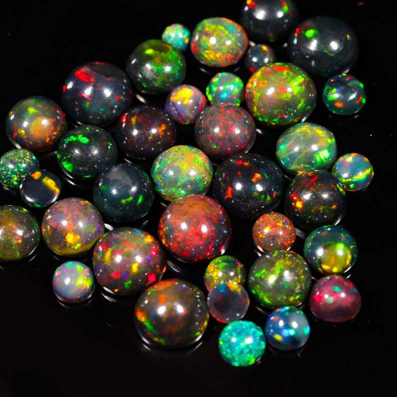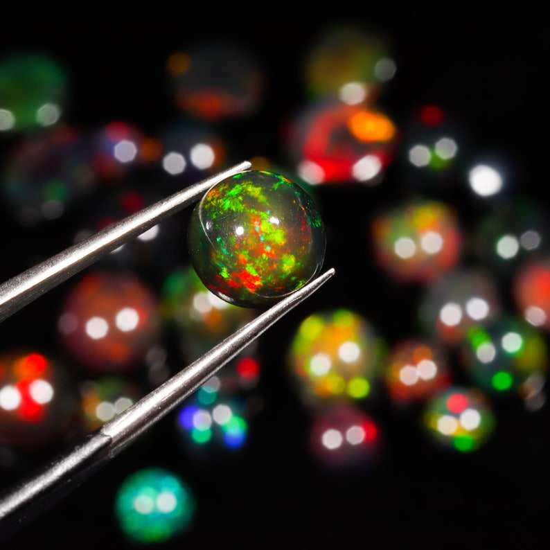 โอปอลไฟสีดำเอธิโอเปียคุณภาพสูง รูปทรงหลวมแบบคาโบชอง ขนาด MM โอปอลเวโลสีดำสำหรับทำเครื่องประดับ เปลี่ยนสีได้