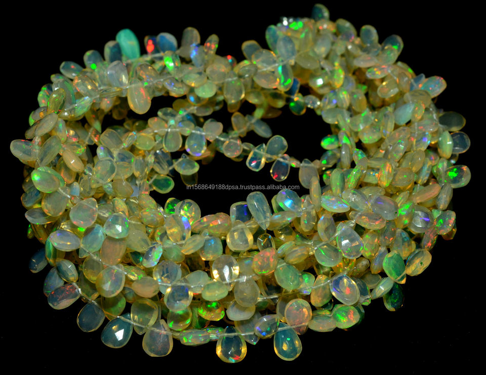 ลูกปัดหินโอปอลเอธิโอเปียนธรรมชาติลูกปัดหินลูกแพร์เหลี่ยมเพชรพลอยลูกปัดเกลียวขนาด16นิ้วสำหรับทำเครื่องประดับ