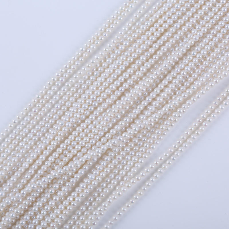ลูกปัดน้ำจืดธรรมชาติคุณภาพสูง ขนาด 3.5-4 มม. ร้อยเป็นเส้นสำหรับทำเครื่องประดับ DIY รูปทรงมันฝรั่ง ขายส่ง