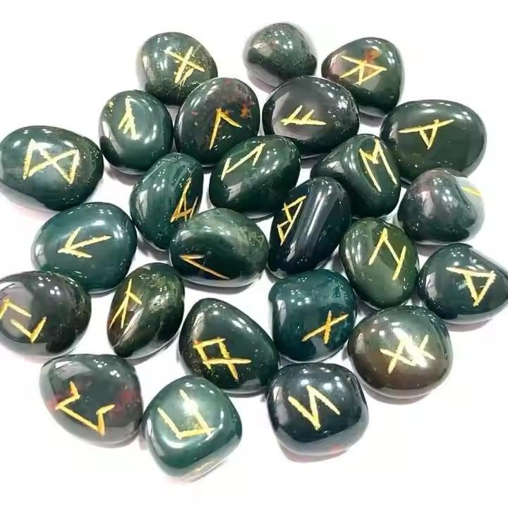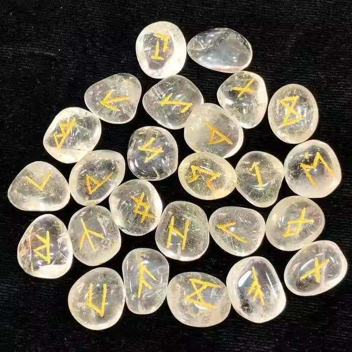 ชุดหินรูนพลอยธรรมชาติคุณภาพสูงแกะสลักอักษรรูนแบบรวมคริสตัลสำหรับฮวงจุ้ยบอกสินค้าขายส่ง